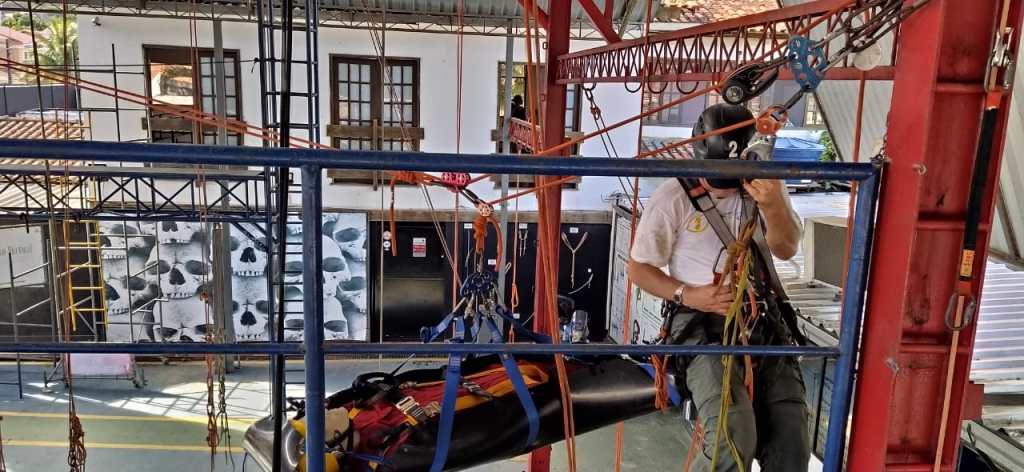 Link para um vídeo do treinamento para resgatar uma pessoa presa num teleférico: https://vimeo.com/499619973