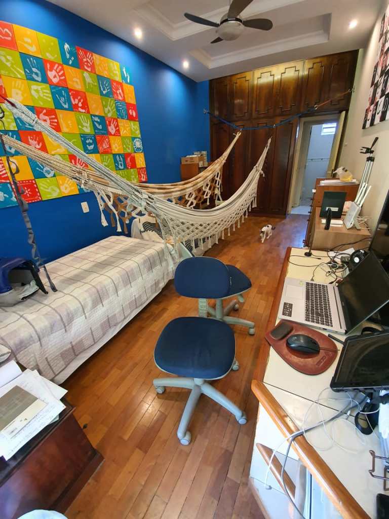 Há tempos queria instalar uma rede dentro de casa. Sempre esbarrava em dois empecilhos: 1) ou obstruía a passagem ou 2) não dava para fixar o gancho na parede porque não era parede, era janela, ou um armário embutido, ou um móvel à frente da parede, ou um espelho, etc.